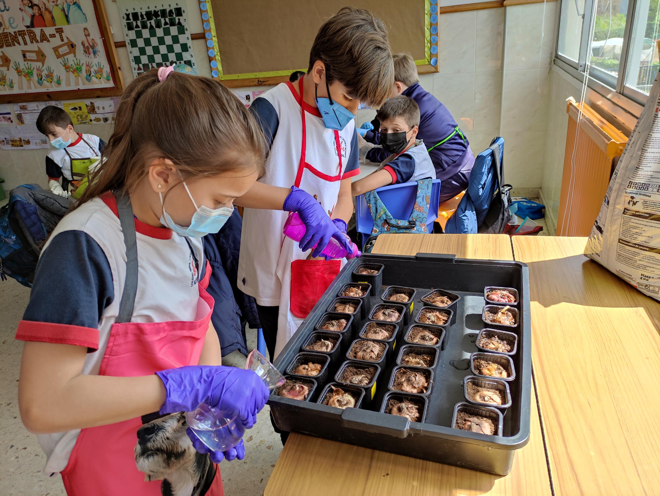 Os alumnos de 4° EP puxeron en práctica o aprendido na unidade das plantas, plantando bulbos.